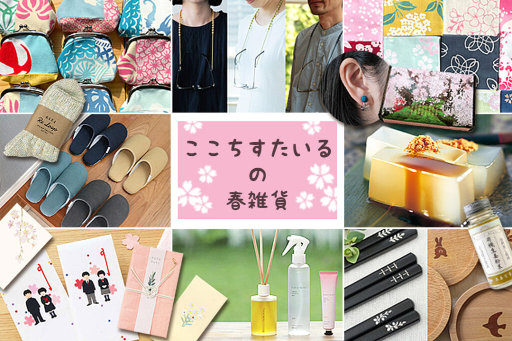 ●ここち すたいる :桜・春てぬぐいたくさん / てぬぐい雑貨あれこれ(maiyaさんの豆がま新作も登場ですよ!) / 葛餅・生姜ドリンク他、美味しいものたくさん / お祝いやご挨拶に、フロム和紙メーカーの祝儀袋&カード / 春からの季節を楽しむ香りや彩りの小物たち